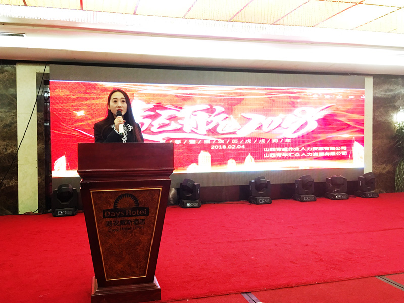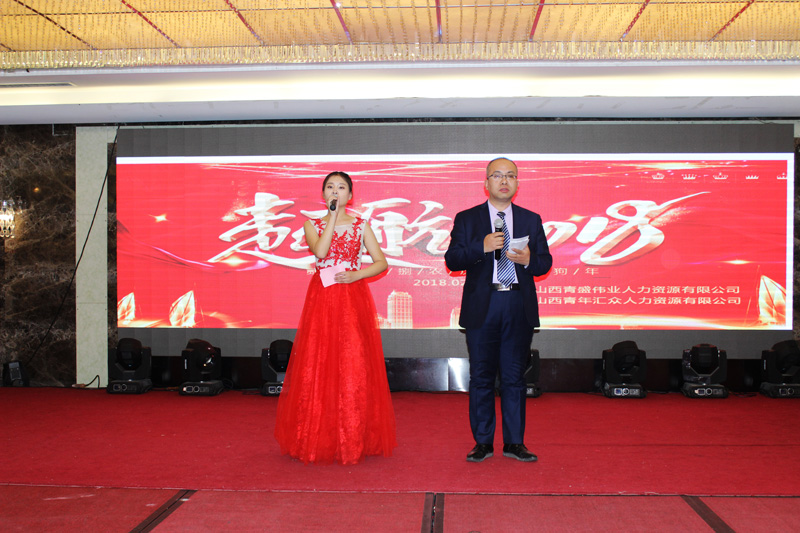 2018年2月4日16時,山西青盛偉業(yè)人力資源有限公司2018年年會暨第六期快樂會議在潞安戴斯酒店盛大開啟。此次盛典以“走進新時代·培育新動能”為主題,回顧和盤點了2017,開啟美好嶄新的2018。公司全體員工,陽泉遠中、忻州興達、晉中尤復(fù)金、清徐匯盛、和順華鷹、山西諾云等區(qū)域合作伙伴及員工家屬歡聚一堂,共度聯(lián)歡。