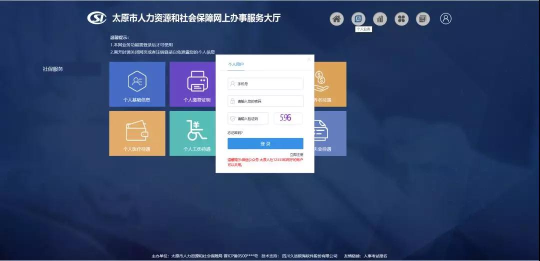 太原人社網(wǎng)廳目前可為個(gè)人用戶提供個(gè)人基礎(chǔ)信息查詢,養(yǎng)老、醫(yī)療、工傷、生育的繳費(fèi)信息查詢,養(yǎng)老、醫(yī)療、工傷、生育,失業(yè)的待遇信息查詢,醫(yī)保賬戶余額信息查詢(網(wǎng)廳登陸后點(diǎn)擊個(gè)人中心可查看醫(yī)保個(gè)人賬戶信息)以及養(yǎng)老的繳費(fèi)證明打印、養(yǎng)老的待遇證明打印、醫(yī)療繳費(fèi)證明打印業(yè)務(wù)以及對(duì)應(yīng)打印業(yè)務(wù)。