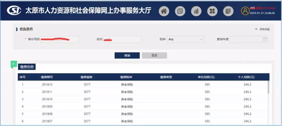下圖所示為參保人員企業(yè)養(yǎng)老保險(xiǎn)信息查詢