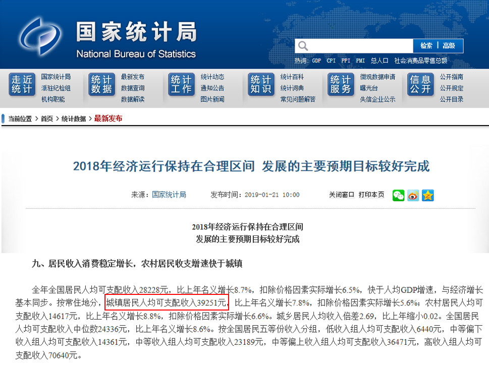 2019年1月21日上午10點(diǎn),國(guó)家統(tǒng)計(jì)局召開國(guó)民經(jīng)濟(jì)運(yùn)行情況新聞發(fā)布會(huì),公布了以下數(shù)據(jù):2018年全年全國(guó)居民人均可支配收入28228元,2018年城鎮(zhèn)居民人均可支配收入39251元。