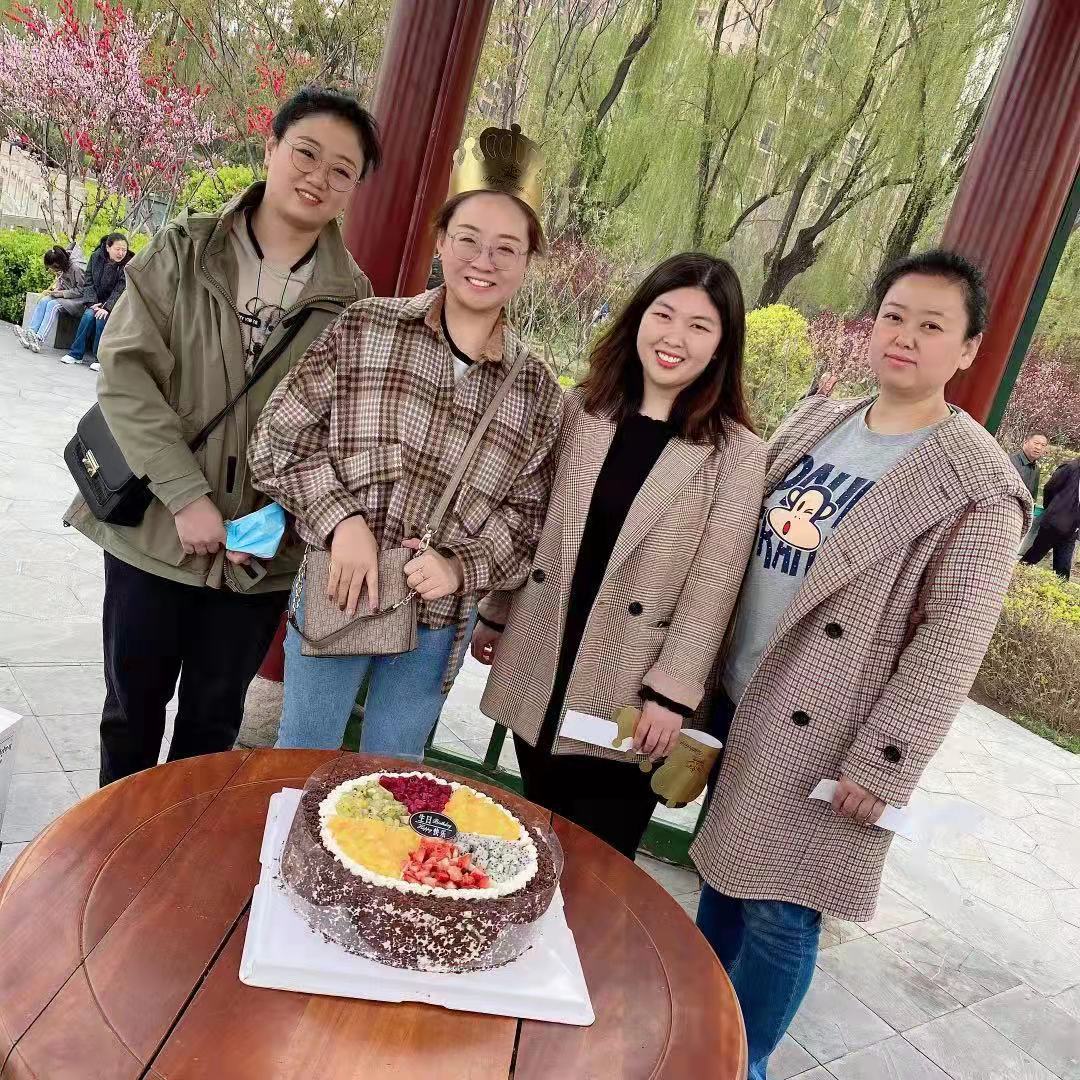 青盛偉業(yè)是個(gè)團(tuán)結(jié)友愛的大家庭,為一季度過生日的員工準(zhǔn)備了大大的蛋糕?!蹲D闵湛鞓贰返母枨镁没仨懀鹛鸬牡案馐?**美好的祝福。