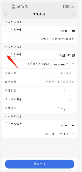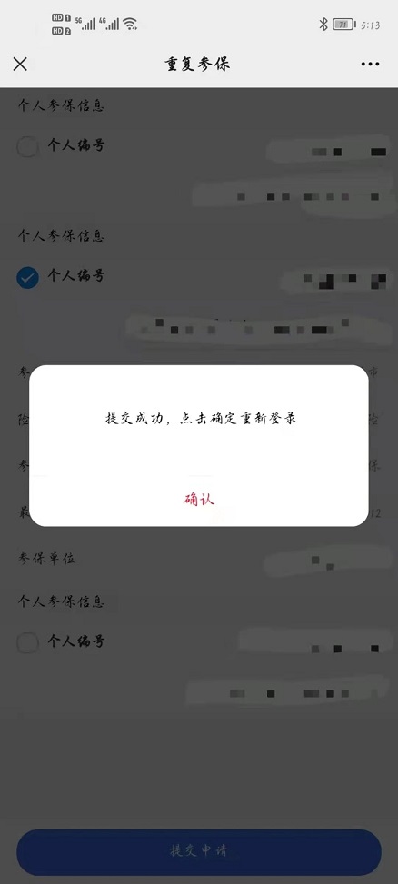 在“重復參?!表撁嫠谐鏊械膫€人參保信息中,核對需要保留的參保信息