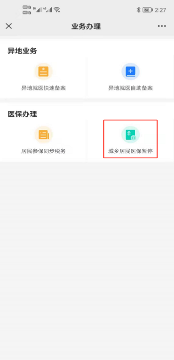 第二步 點(diǎn)擊“業(yè)務(wù)辦理”中右下角的“城鄉(xiāng)居民醫(yī)保暫?!?。