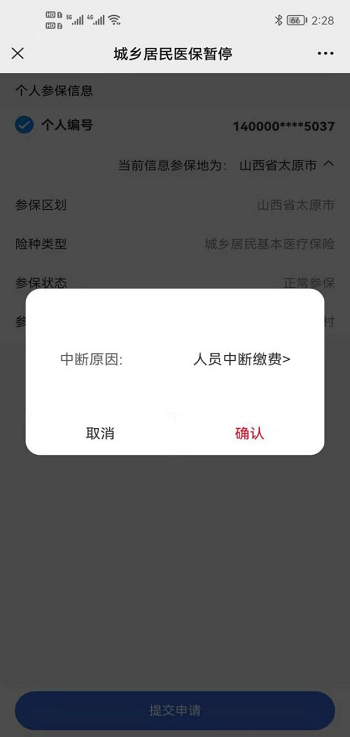 例如:山西某大學(xué)大一新生小王在學(xué)校所在的A城市新參居民醫(yī)保時(shí)系統(tǒng)提示:他在B城市已經(jīng)存在有效的居民醫(yī)保參保信息,無(wú)法辦理,需要到B城市辦理暫停參保業(yè)務(wù)。