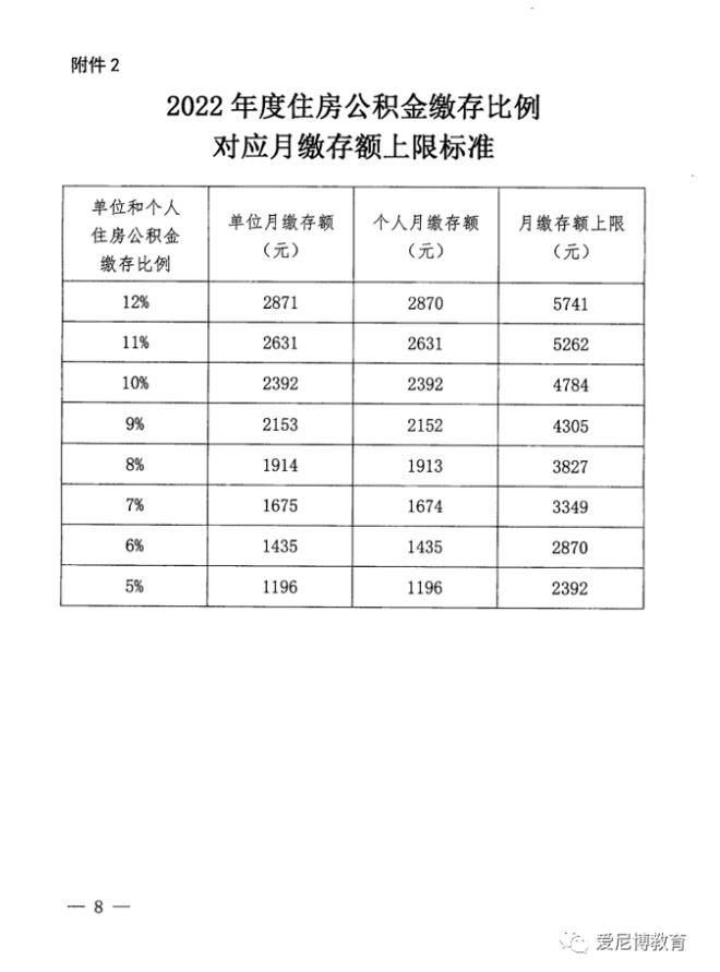 2022年度住房公積金繳存基數和比例調整通知