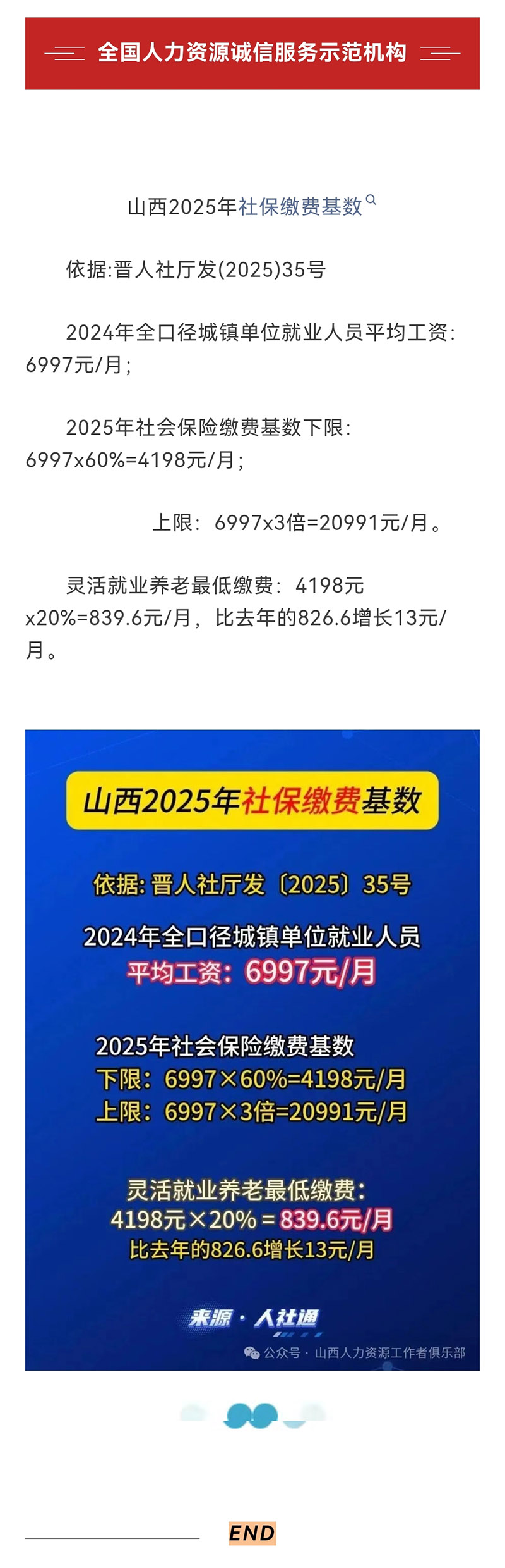 山西省2025年社保繳費(fèi)基數(shù)(社平工資/養(yǎng)老保險(xiǎn)繳費(fèi)基數(shù)上下限/靈活就業(yè)個(gè)人繳費(fèi)標(biāo)準(zhǔn))
